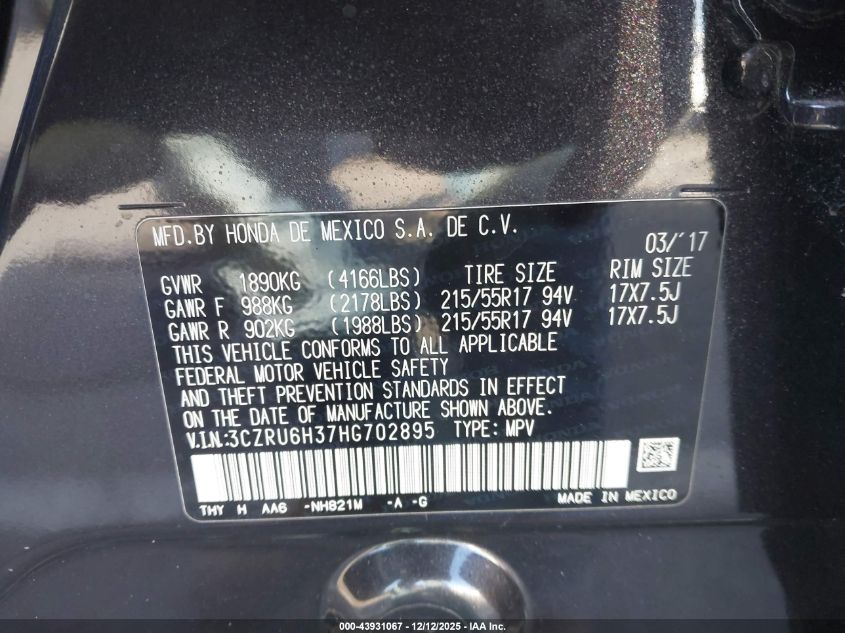 2017 HONDA HR-V EXL