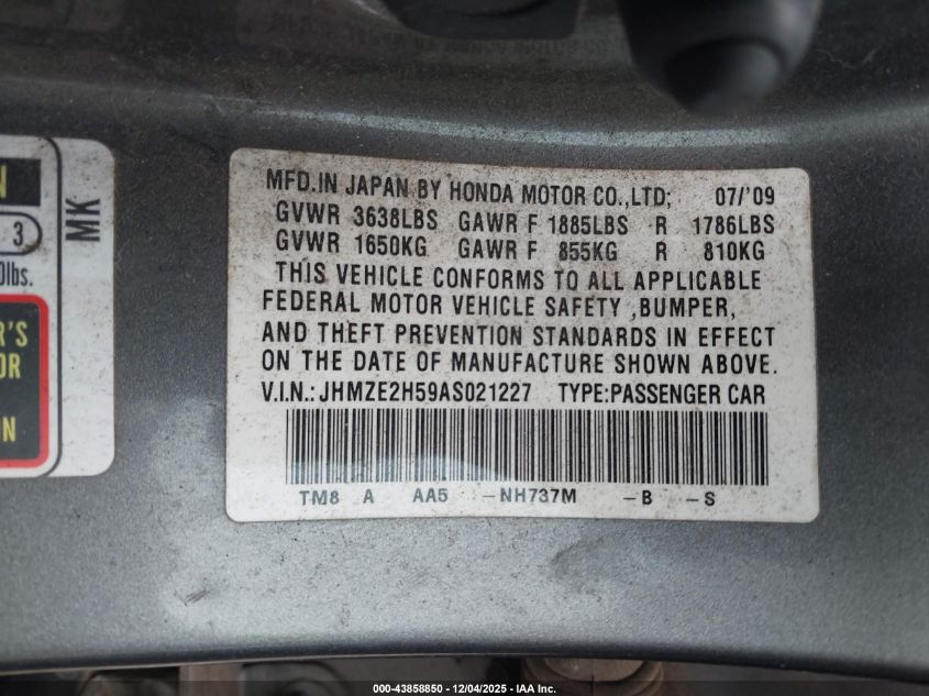 2010 HONDA INSIGHT 2010 року Гибрид, 1.3, Передний привод, vin - JHMZE2H59AS021227 из США