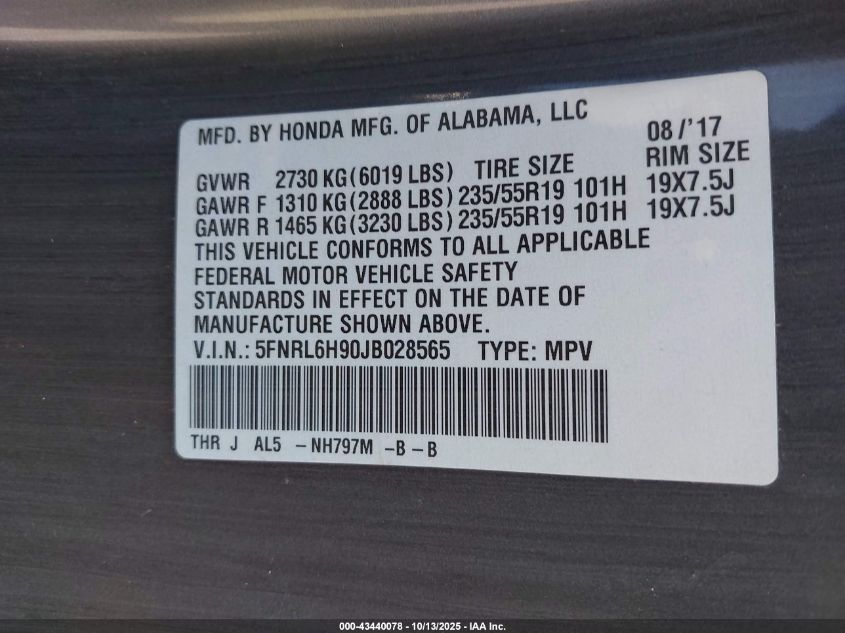 2018 HONDA ODYSSEY 2018 року Бензин, 3.5, Передний привод, vin - 5FNRL6H90JB028565 из США