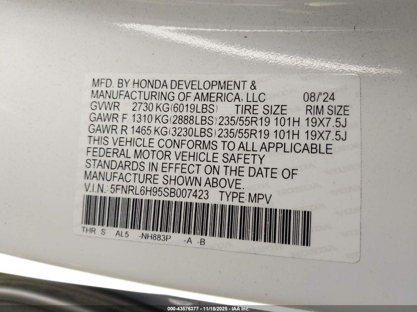 2025 HONDA ODYSSEY 2025 року Бензин, 3.5, Передний привод, vin - 5FNRL6H95SB007423 из США