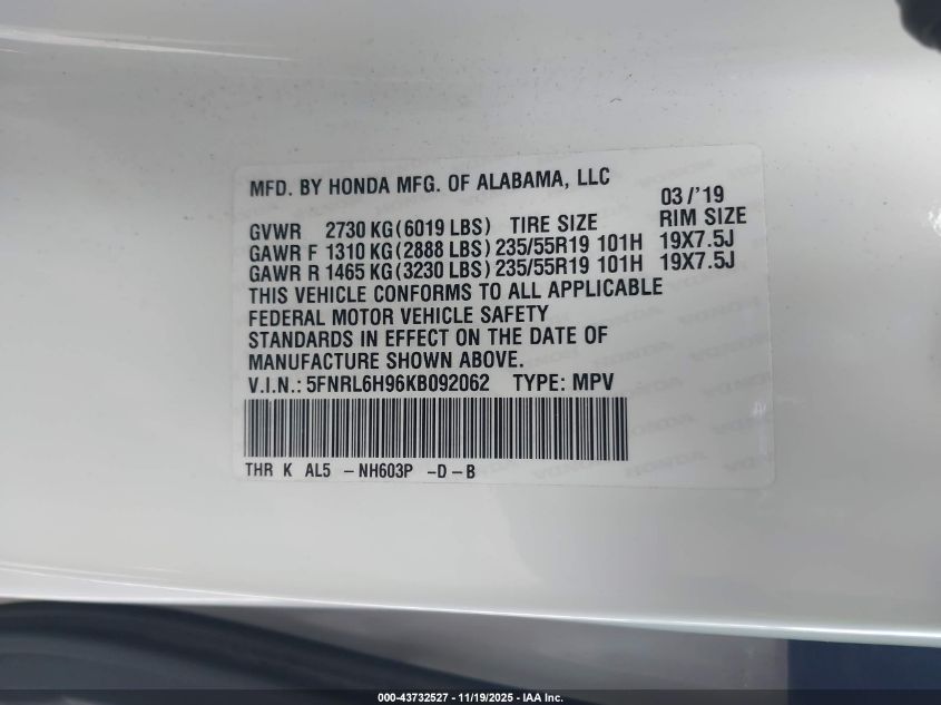 2019 HONDA ODYSSEY TOURING