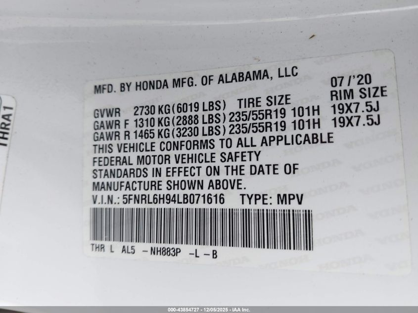 Цвет БелыйЦилиндры 6Привод Передний приводVIN 5FNRL6H94LB071616Состояние СтационарноПовреждения Передняя левая AutoRIA
