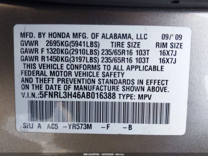 Цвет КоричневийЦилиндры 6Привод Передний приводVIN 5FNRL3H46AB016388Состояние Заводится и едет (проверено)Повреждения Передняя или задняяДата аукциона 2025-12-09 AutoRIA