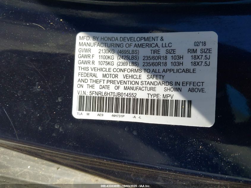 2018 HONDA ODYSSEY EXL