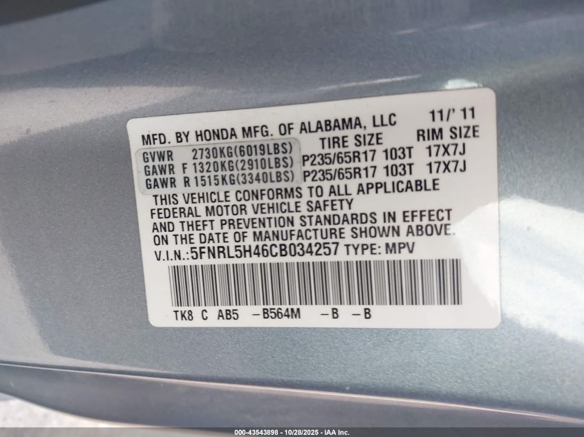 Цвет СинийЦилиндры 6Привод Передний приводVIN 5FNRL5H46CB034257Состояние Заводится и едет (проверено)Повреждения Передняя или задняя AutoRIA