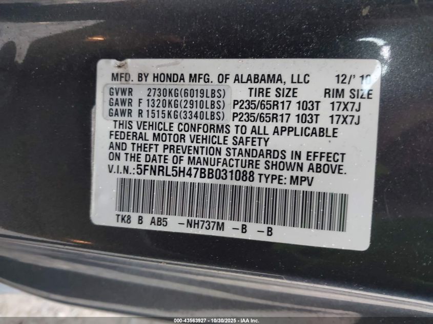 Цвет СерыйЦилиндры 6Привод Передний приводVIN 5FNRL5H47BB031088Состояние Заводится и едет (проверено)Повреждения Задняя AutoRIA