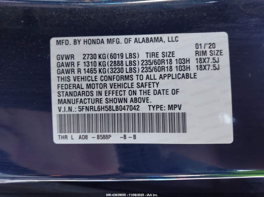 Цвет СинийЦилиндры 6Привод Передний приводVIN 5FNRL6H58LB047042Состояние Заводится и едет (проверено)Повреждения Правая сторонаДата аукциона 2025-12-08 AutoRIA