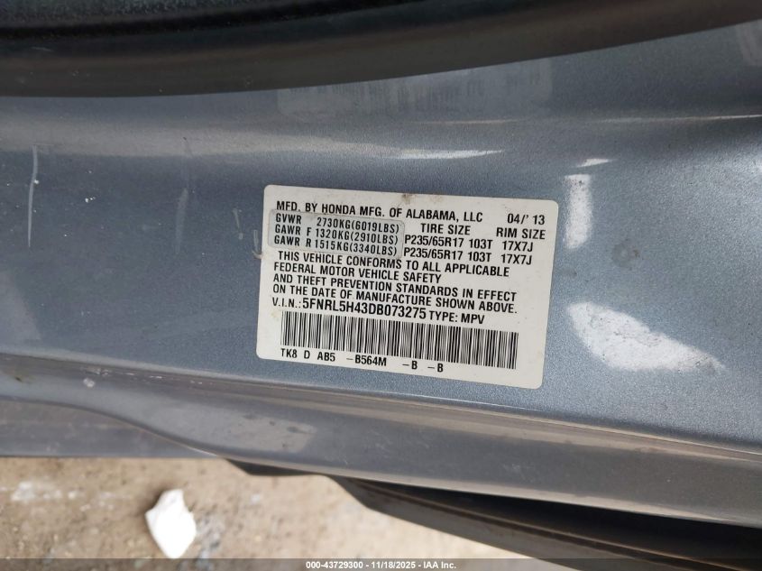 Цвет СинийЦилиндры 6Привод Передний приводVIN 5FNRL5H43DB073275Состояние Заводится и едет (проверено)Повреждения Передняя или задняя AutoRIA