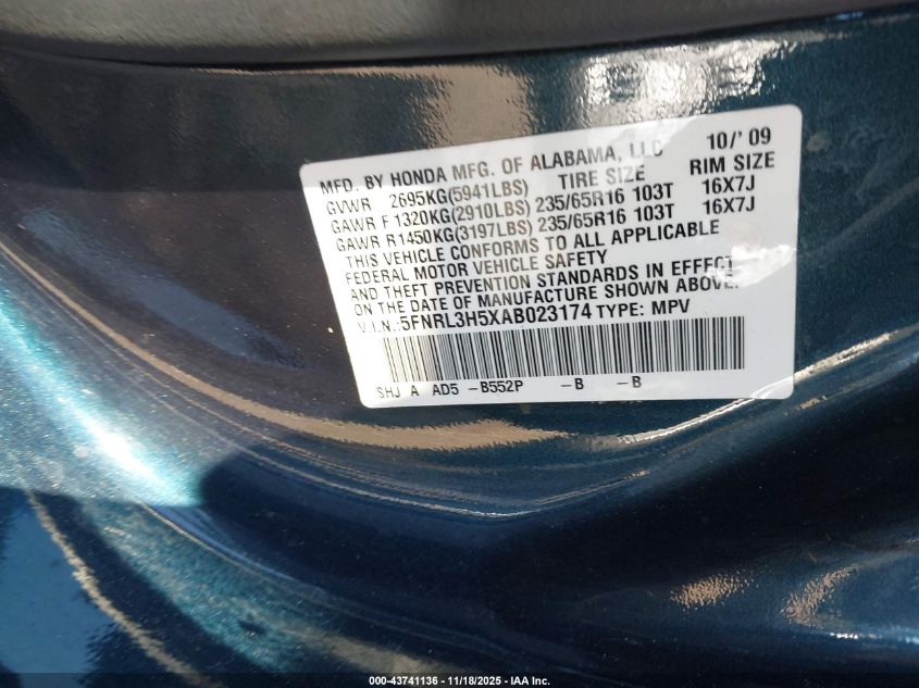 Цвет СинийЦилиндры 6Привод Передний приводVIN 5FNRL3H5XAB023174Состояние СтационарноПовреждения Задняя AutoRIA
