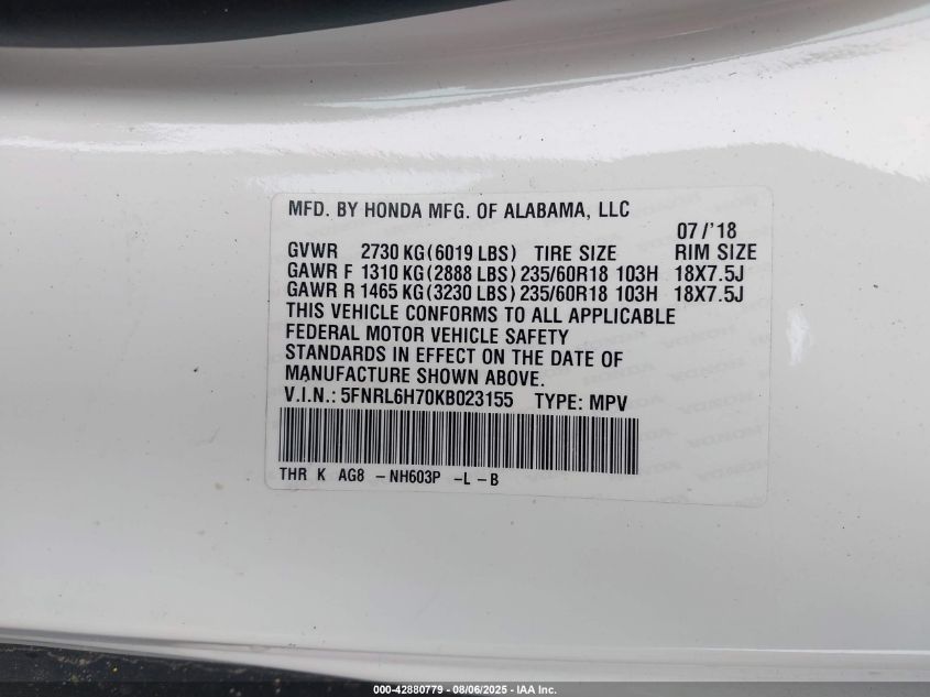 Цвет БелыйЦилиндры 6Привод Передний приводVIN 5FNRL6H70KB023155Состояние СтационарноПовреждения Вода AutoRIA