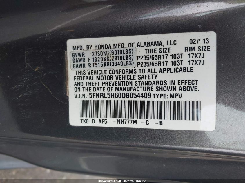 Цвет СерыйЦилиндры 6Привод Передний приводVIN 5FNRL5H60DB054409Состояние Заводится и едет (проверено)Повреждения Правая сторона AutoRIA