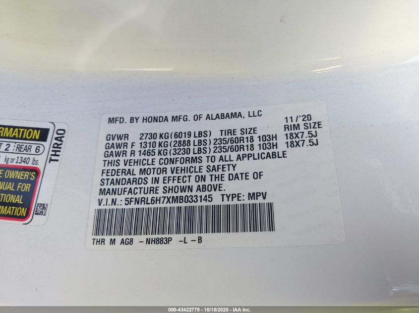 2021 HONDA ODYSSEY TOURING