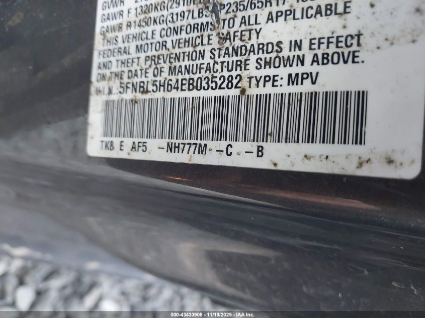Цвет СерыйЦилиндры 6Привод Передний приводVIN 5FNRL5H64EB035282Состояние Заводится и едет (проверено)Повреждения ЗадняяДата аукциона 2025-12-08 AutoRIA