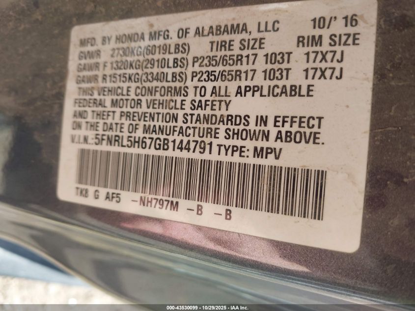 Цвет СерыйЦилиндры 6Привод Передний приводVIN 5FNRL5H67GB144791Состояние СтационарноПовреждения Передняя или задняя AutoRIA