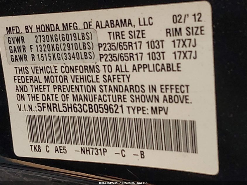 Цвет ЧерныйЦилиндры 6Привод Передний приводVIN 5FNRL5H63CB059621Состояние Заводится и едет (проверено)Повреждения Передняя и задняя AutoRIA