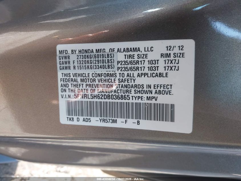 Цвет ЗолотойЦилиндры 6Привод Передний приводVIN 5FNRL5H62DB036865Состояние Заводится и едет (проверено)Повреждения Задняя AutoRIA