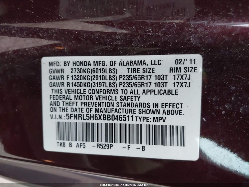 Цвет БургундияЦилиндры 6Привод Передний приводVIN 5FNRL5H6XBB046511Состояние Заводится и едет (проверено)Повреждения Передняя или задняя AutoRIA