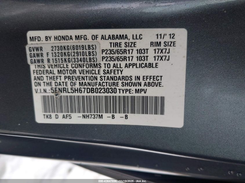 Цвет ЧерныйЦилиндры 6Привод Передний приводVIN 5FNRL5H67DB023030Состояние Заводится и едет (проверено)Повреждения ЗадняяДата аукциона 2025-12-09 AutoRIA