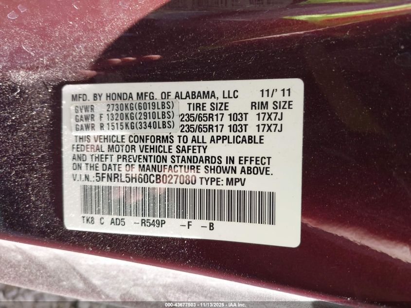 Цвет БургундияЦилиндры 6Привод Передний приводVIN 5FNRL5H60CB027080Состояние Заводится и едет (проверено)Повреждения Передняя или задняя AutoRIA