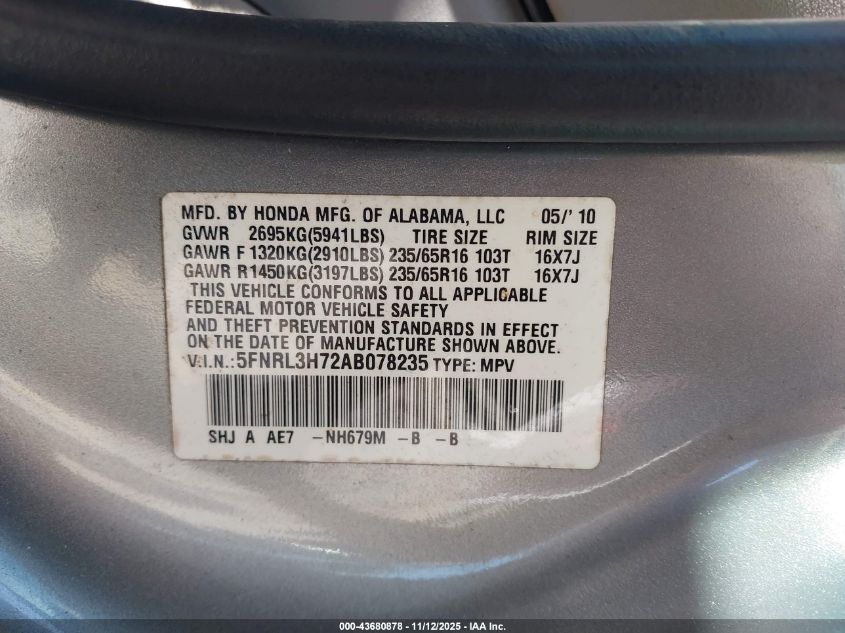 Цвет СеребряныйЦилиндры 6Привод Передний приводVIN 5FNRL3H72AB078235Состояние Заводится и едет (проверено)Повреждения Передняя или задняяДата аукциона 2025-12-10 AutoRIA