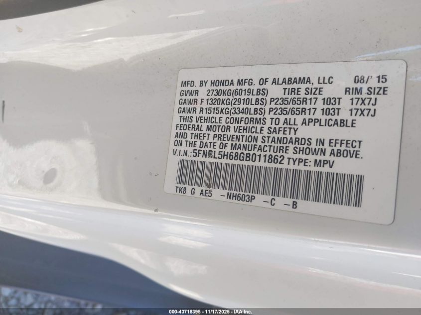 2016 HONDA ODYSSEY TOURING