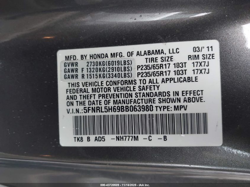 Цвет СерыйЦилиндры 6Привод Передний приводVIN 5FNRL5H69BB063980Состояние Заводится и едет (проверено)Повреждения Передняя леваяДата аукциона 2025-12-09 AutoRIA