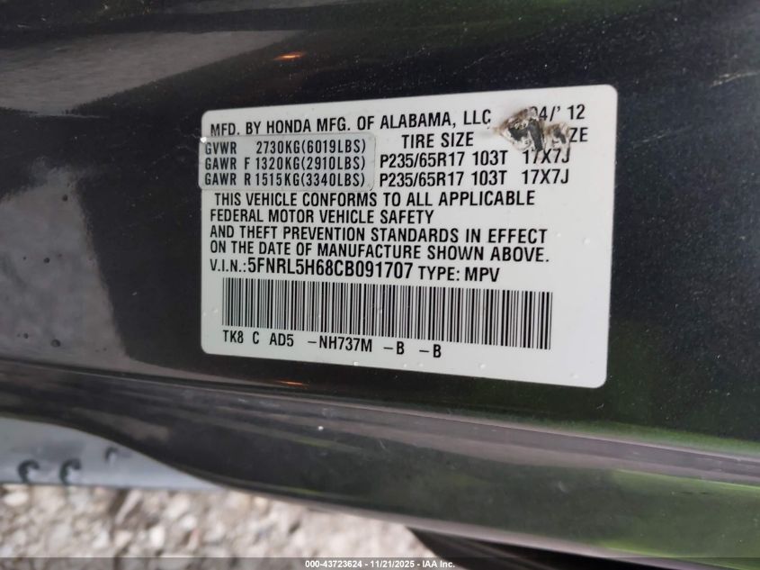 Цвет СерыйЦилиндры 6Привод Передний приводVIN 5FNRL5H68CB091707Состояние Заводится и едет (проверено)Повреждения КрышаДата аукциона 2025-12-10 AutoRIA