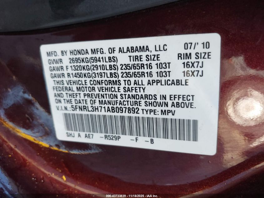 Цвет БургундияЦилиндры 6Привод Передний приводVIN 5FNRL3H71AB097892Состояние СтационарноПовреждения Передняя правая AutoRIA