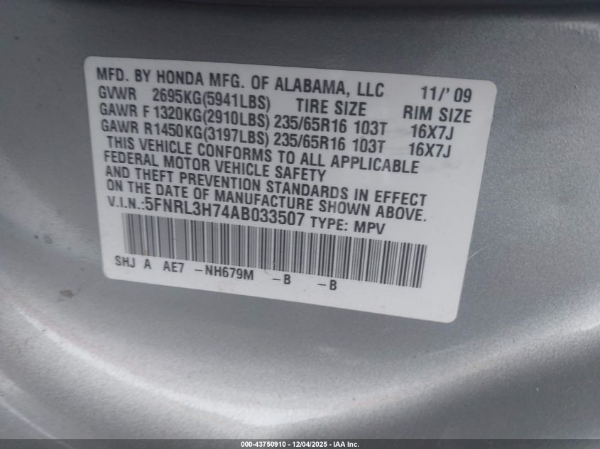 Цвет СинийЦилиндры 6Привод Передний приводVIN 5FNRL3H74AB033507Состояние Заводится и едет (проверено)Повреждения Обычный износДата аукциона 2025-12-08 AutoRIA