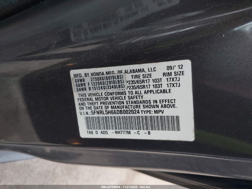 Цвет СерыйЦилиндры 6Привод Передний приводVIN 5FNRL5H66DB002024Состояние Заводится и едет (проверено)Повреждения Передняя или задняя AutoRIA