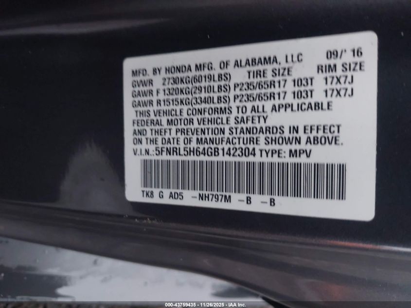 2016 HONDA ODYSSEY 2016 року Бензин, 3.5, Передний привод, vin - 5FNRL5H64GB142304 из США