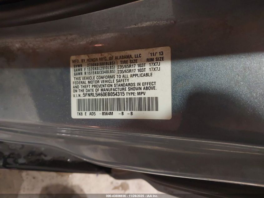 Цвет СинийЦилиндры 6Привод Передний приводVIN 5FNRL5H60EB054315Состояние Заводится и едет (проверено)Повреждения Передняя или задняя AutoRIA