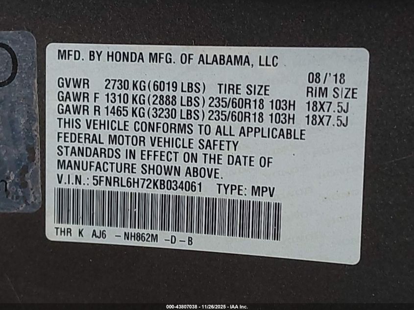 Цвет ЗолотойЦилиндры 6Привод Передний приводVIN 5FNRL6H72KB034061Состояние Заводится и едет (проверено)Повреждения Левая сторонаДата аукциона 2025-12-11 AutoRIA