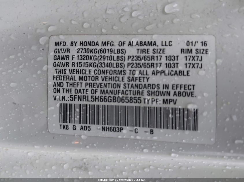 Цвет БелыйЦилиндры 6Привод Передний приводVIN 5FNRL5H66GB065855Состояние Заводится и едет (проверено)Повреждения Левая сторона AutoRIA