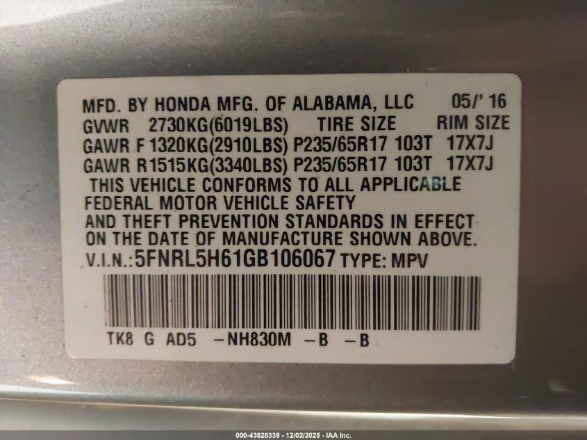 2016 HONDA ODYSSEY 2016 року Бензин, 3.5, Передний привод, vin - 5FNRL5H61GB106067 из США