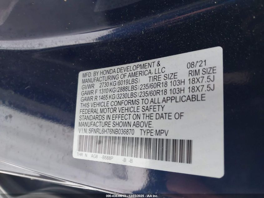 Цвет СинийЦилиндры 6Привод Передний приводVIN 5FNRL6H76NB036870Состояние СтационарноПовреждения По всему авто AutoRIA