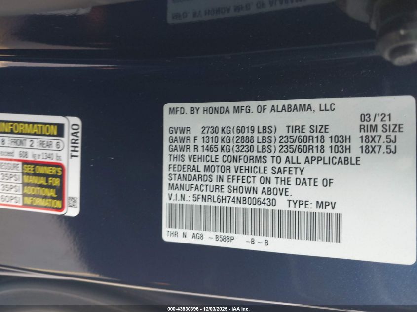 Цвет СинийЦилиндры 6Привод Передний приводVIN 5FNRL6H74NB006430Состояние Заводится и едет (проверено)Повреждения Задняя AutoRIA
