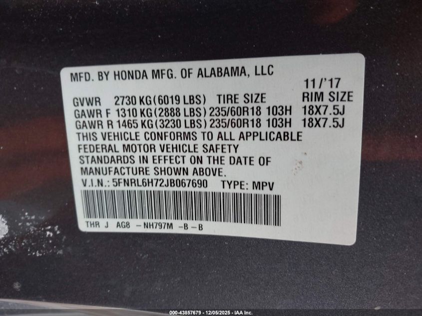 Цвет СерыйЦилиндры 6Привод Передний приводVIN 5FNRL6H72JB067690Состояние Заводится и едет (проверено)Повреждения Правая сторона AutoRIA