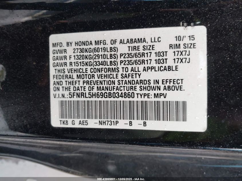 Цвет ЧерныйЦилиндры 6Привод Передний приводVIN 5FNRL5H69GB034860Состояние Заводится и едет (проверено)Повреждения Передняя или задняя AutoRIA