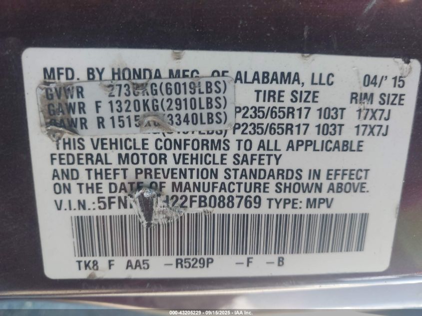 Цвет БургундияЦилиндры 6Привод Передний приводVIN 5FNRL5H22FB088769Состояние СтационарноПовреждения Передняя или задняя AutoRIA