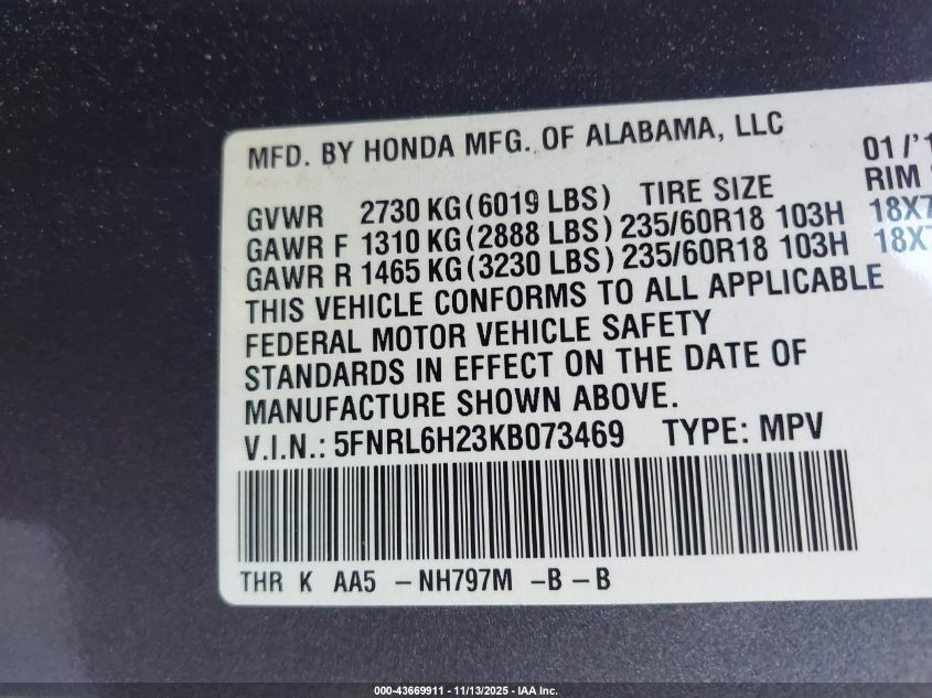 Цвет СерыйЦилиндры 6Привод Передний приводVIN 5FNRL6H23KB073469Состояние ЗаводитсяПовреждения Передняя или задняя AutoRIA