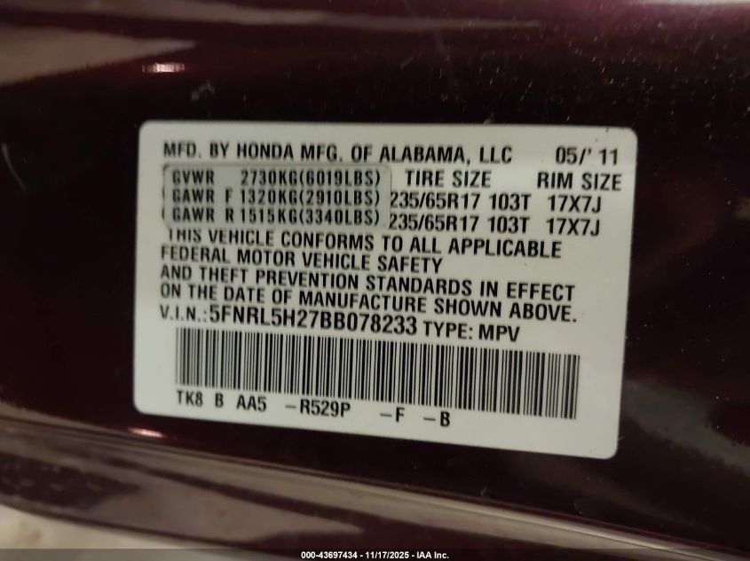 Цвет БургундияЦилиндры 6Привод Передний приводVIN 5FNRL5H27BB078233Состояние СтационарноПовреждения Передняя или задняя AutoRIA