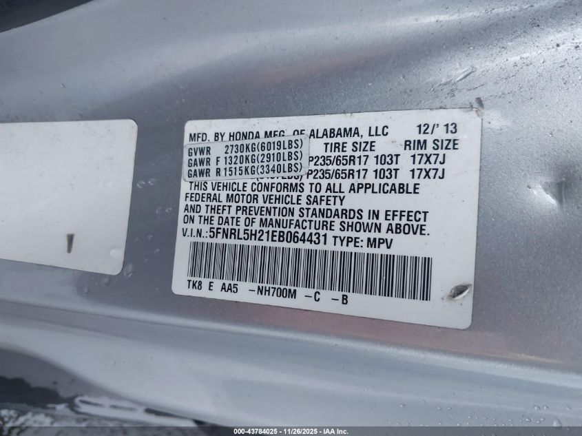 Цвет СеребряныйЦилиндры 6Привод Передний приводVIN 5FNRL5H21EB064431Состояние СтационарноПовреждения Передняя или задняя AutoRIA