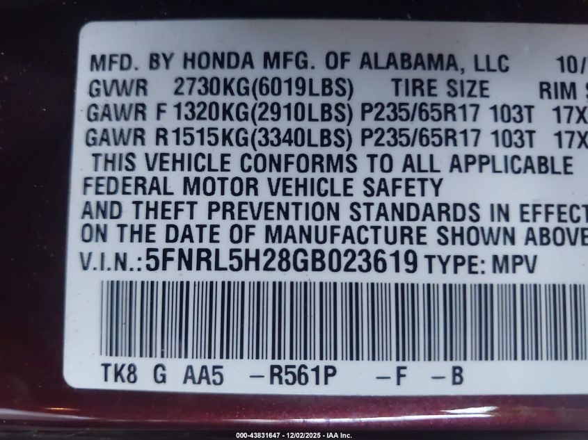 Цвет БургундияЦилиндры 6Привод Передний приводVIN 5FNRL5H28GB023619Состояние Заводится и едет (проверено)Повреждения Передняя или задняя AutoRIA