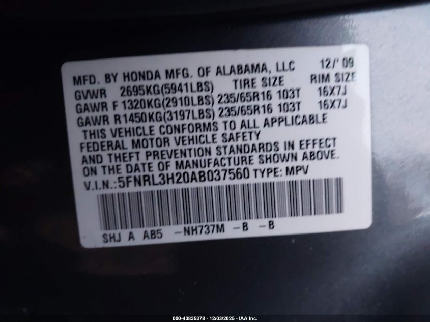 2010 HONDA ODYSSEY LX