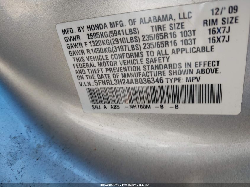 Цвет СеребряныйЦилиндры 6Привод Передний приводVIN 5FNRL3H24AB036346Состояние Заводится и едет (проверено)Повреждения Передняя или задняя AutoRIA