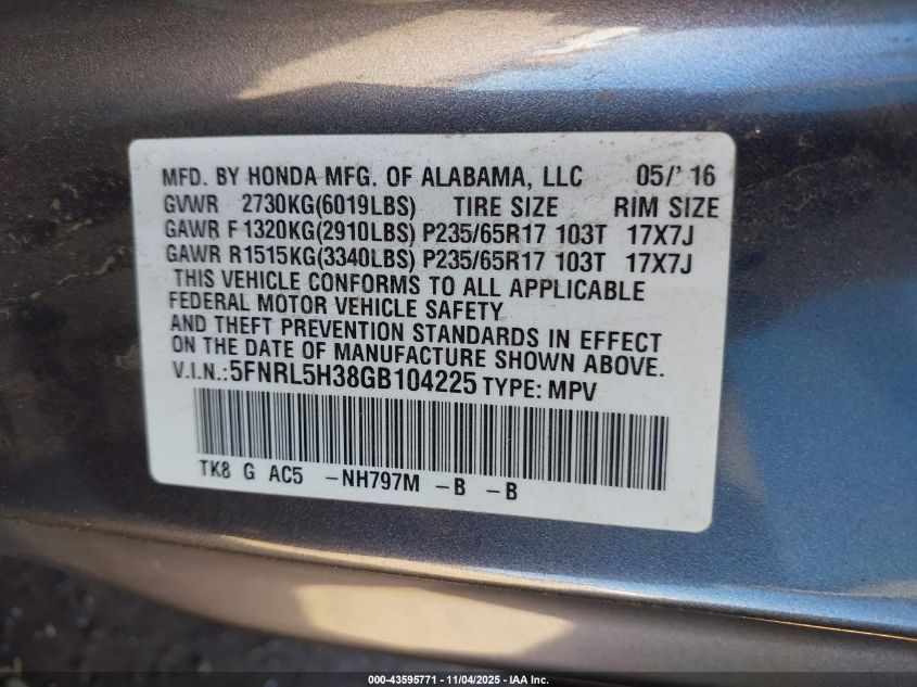 Цвет СерыйЦилиндры 6Привод Передний приводVIN 5FNRL5H38GB104225Состояние Заводится и едет (проверено)Повреждения Передняя или задняя AutoRIA