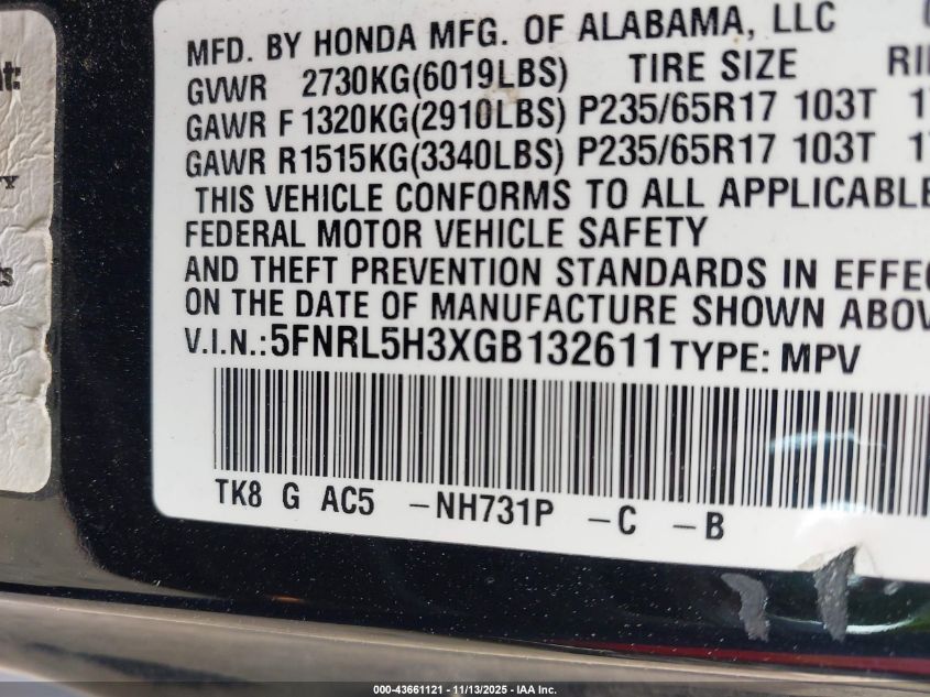 Цвет ЧерныйЦилиндры 6Привод Передний приводVIN 5FNRL5H3XGB132611Состояние Заводится и едет (проверено)Повреждения Передняя или задняя AutoRIA