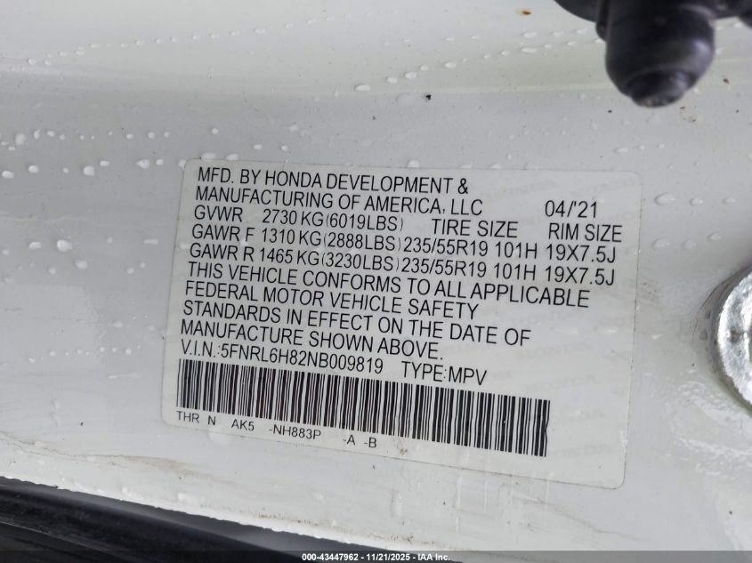 2022 HONDA ODYSSEY 2022 року Бензин, 3.5, Передний привод, vin - 5FNRL6H82NB009819 из США
