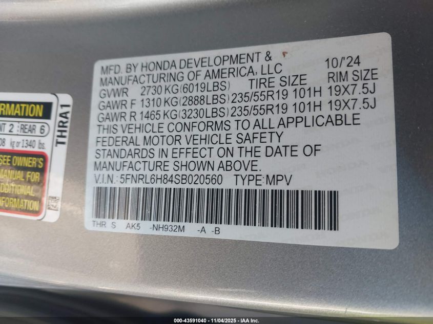 2025 HONDA ODYSSEY TOURING